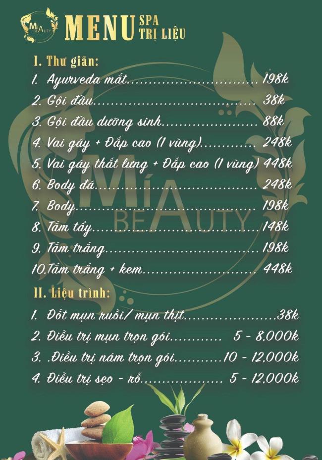 Mía Beauty Spa là một tiệm làm đẹp cung cấp các dịch vụ spa khác nhau, từ spa dưỡng ẩm, trị mụn đến spa thư giãn. Bạn sẽ được sử dụng các sản phẩm chất lượng cao, an toàn và hiệu quả. Bạn sẽ được thưởng thức không gian yên tĩnh và thoải mái, giúp bạn xua tan mọi căng thẳng và mệt mỏi. hãy liên hệ với Mía Beauty Spa ngay hôm nay để đặt lịch hẹn và được phục vụ tận tình nhé!